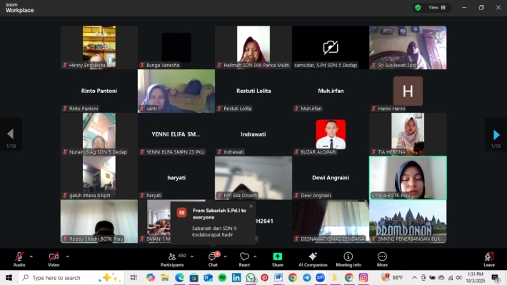 Pekanbaru, 03 Oktober 2025 – Dalam rangkaian kegiatan menyambut Hari Guru Nasional 2025, Balai Guru dan Tenaga Kependidikan (BGTK) Provinsi Riau sukses menggelar Webinar Sosialisasi Penghargaan BGTK Riau Tahun 2025. Kegiatan ini diselenggarakan secara daring, tepat pukul 13.00 WIB, bersama para guru yang ada di Provinsi Riau, terdapat sekitar 500 guru yang hadir diwebinar tersebut.